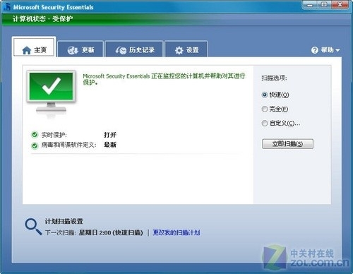 此外,MSE还采取了一种轻型设计,并使用了多项智能资源利用技术,即使在配置陈旧、性能较差的PC上,也可以最大限度地降低其对用户日常任务的影响,笔者也随即下载安装了MSE进行了试用。