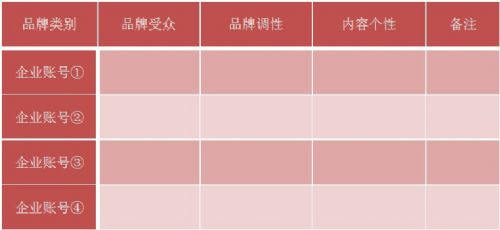 如果企业有多个品牌需要规划内容,不妨可以参照以下表格根据品牌属性对品牌账号进行分类,分好类别后再进行关键字定位。